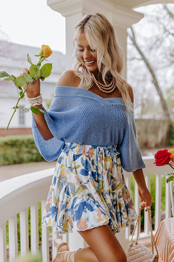 Take on any spring day in style with our flirty 'Daytona Daze Skort' featuring lightweight breezy material patterned with a blue and peach hued floral print, an elastic waistline with a tie closure, and a relaxed silhouette that ends in a ruffled upper-thigh length hemline! Plus, these cuties include sewn in shorts!