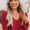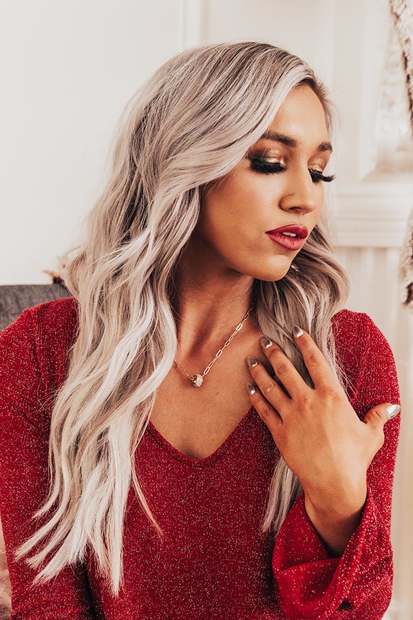 We have no doubt you will dazzle in this divine necklace featuring a dainty gold link chain with a rhinestone hoop charm!