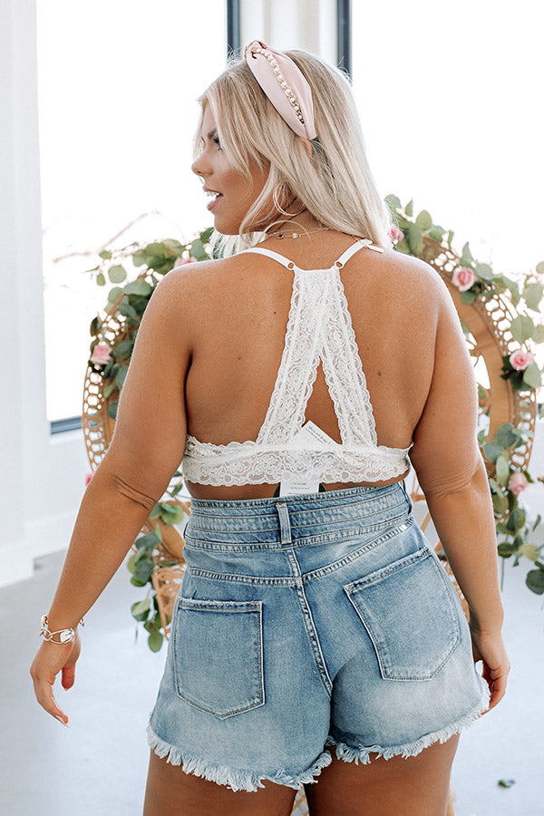 Plus Size - Add a femme and flirty touch to any look with our white 'Deepest Desire' bralette featuring a scalloped v-cut neckline, intricate lace detailing, skinny adjustable shoulder straps that carry over into a racerback, and elastic banded seamed cups!