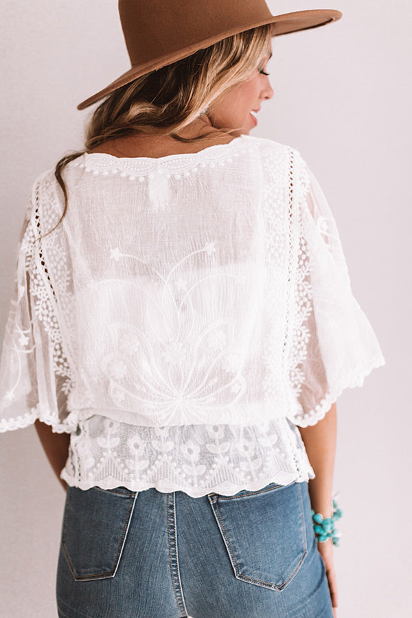 We have no doubt that you will have a "delightful day" when this white top is a part of your OOTD! It features gorgeous crochet detailing, semi sheer oversized sleeves, a scalloped trim scooped neckline, and a cinched waistband with a short peplum bottom! This delicate piece can be styled with denim flares and a dark neutral crossbody and faux suede hat or with our light pink "Latte Run Midrise Distressed Shorts" and "The Underwood Faux Leather Wedge in Brown" for an outfit that will steal the show wherever you go! Measurements