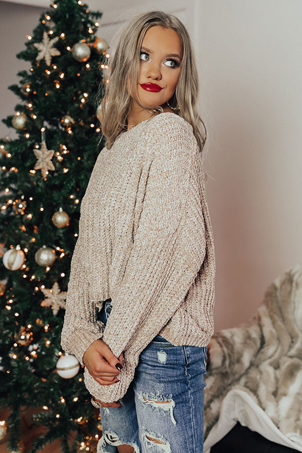 There is no better piece to wear on a "Denver date night" than this adorable birch colored sweater featuring soft lightweight chenille material with ribbed texturing, a high rounded neckline that can be worn off one shoulder, long loose sleeves with fitted cuffs, and a relaxed silhouette that falls into an uneven cropped hemline! We have styled this cold weather essential with some distressed ankle skinnies and olive boots, but you can also front tuck it into our "Pretty On Point Snake Print Skirt" with some black over the knee boots, our "Style Profile Faux Leather Tote in Black," and our "Evening Adventure Hat in Black!" Measurements