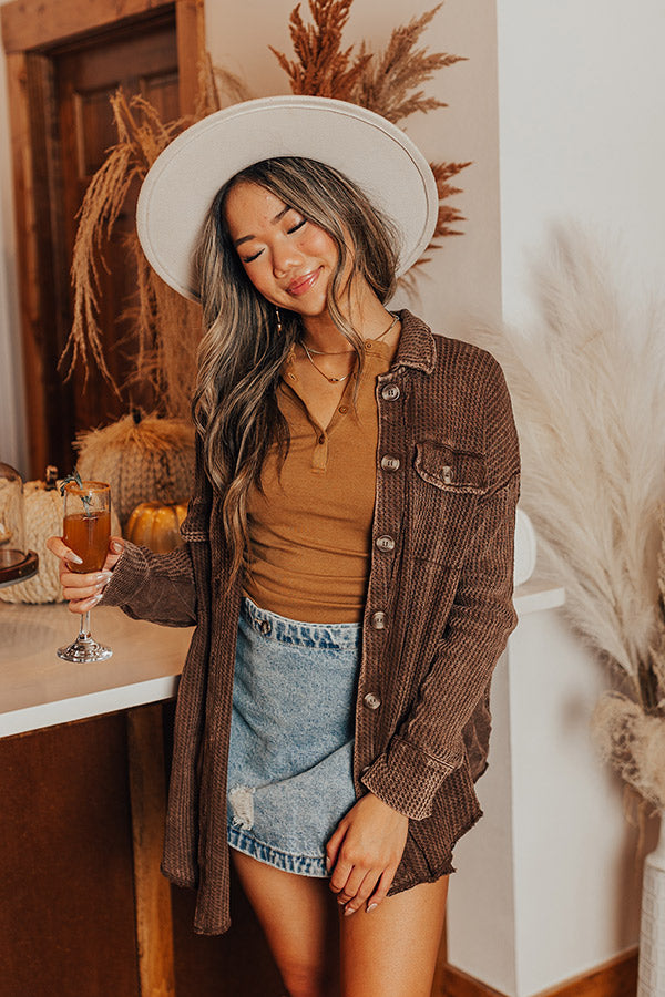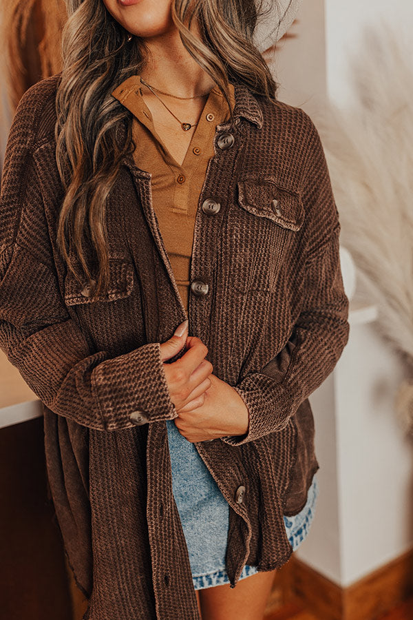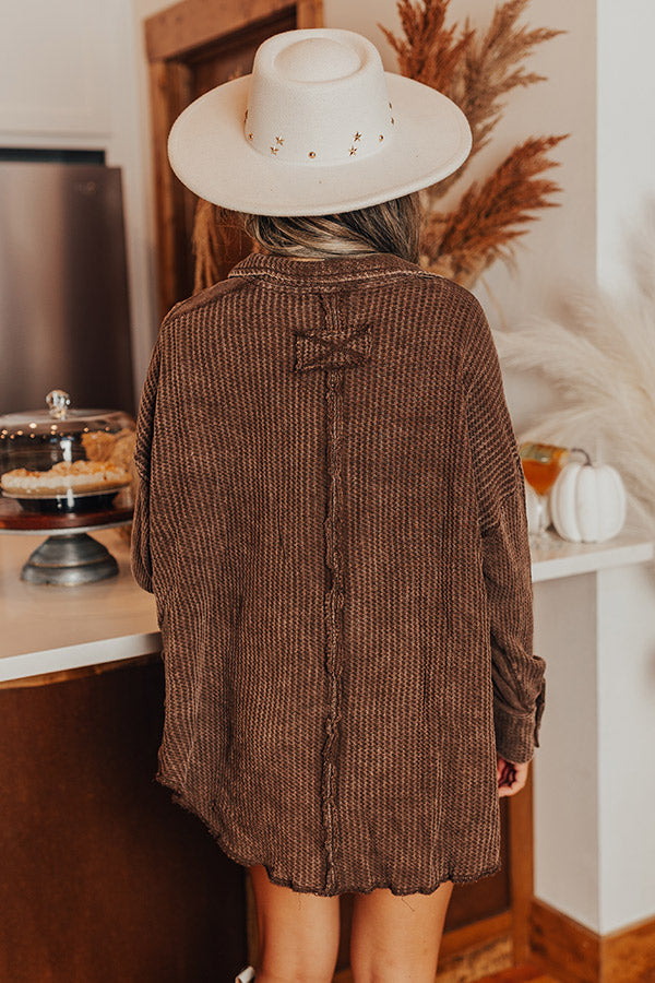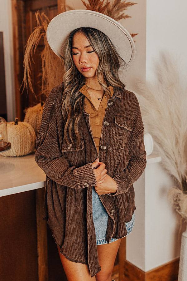 - Unlined mineral washed waffle knit material as well as ribbed textured accents