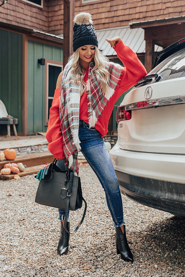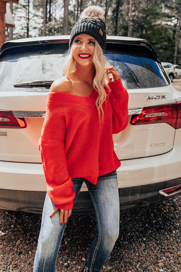 Snuggle up and get ready for fall in our darling red "Denver Delights" sweater featuring ultra soft lightweight tight knit material with ribbed texturing, a wide v-cut neckline that can be worn off one shoulder, long loose sleeves, and a relaxed silhouette that falls into a straight tunic-length hemline! Measurements