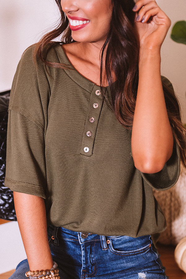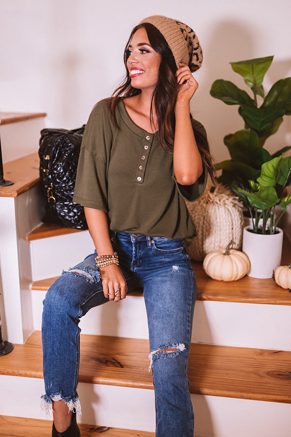 Keep it simple in our casual cute army green "Denver Destination Shift Top" featuring soft lightweight material, a button up bodice with a high rounded neckline, short loose sleeves, and a relaxed silhouette that falls into a rounded hemline! Measurements