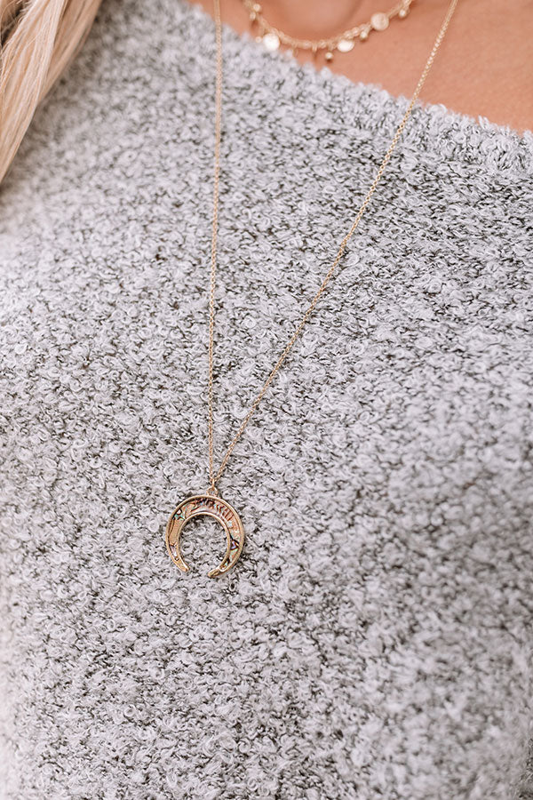 Steal the show wherever you do with the "Destin Dreamer" necklace featuring two dainty chains with the shorter one having small gold circle charms and the longer piece being adorned with an iridescent crescent moon pendant!
