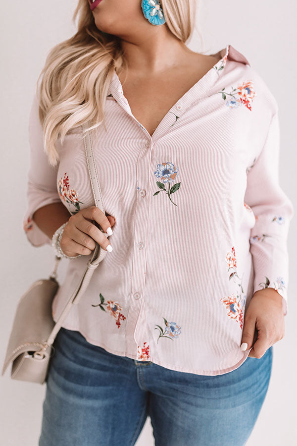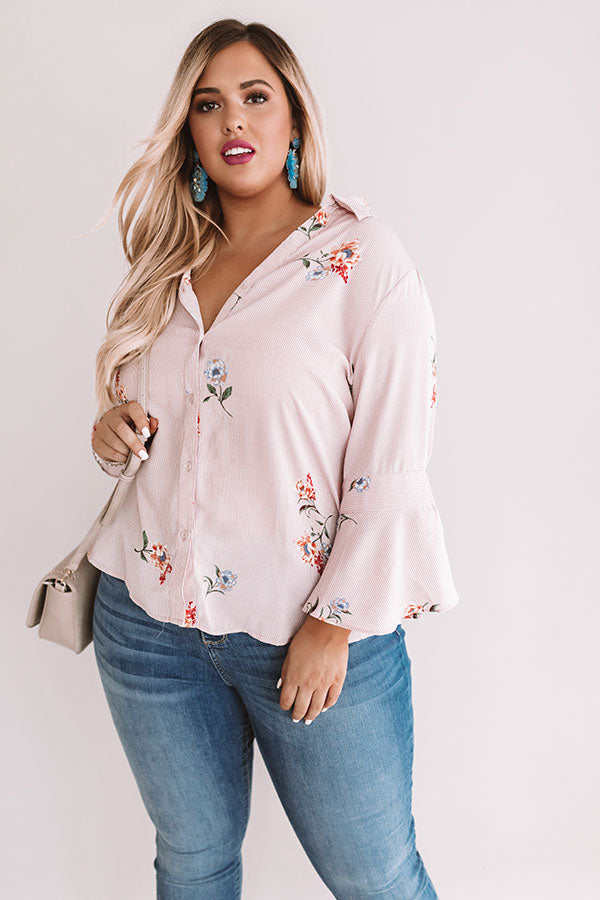 The "Destination Dreaming Shift Top" is the perfect combination of classic and chic! This collared cutie combines the classic button down bodice that you know and love with an ultra feminine striped floral print and a flirty flounced sleeve, to create the ultimate "classic chic" look. Style with white skinnies and a sassy sandal for a preppy polished look that you will wear time and time again!