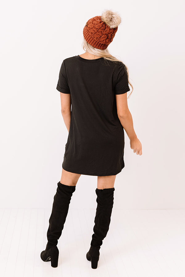 Head to "dinner and a show" in style with this flirty black shift dress featuring soft lightweight material, a v-cut neckline, short loose sleeves, and a relaxed silhouette that falls into a straight hemline with a twisted detail in the front! Measurements