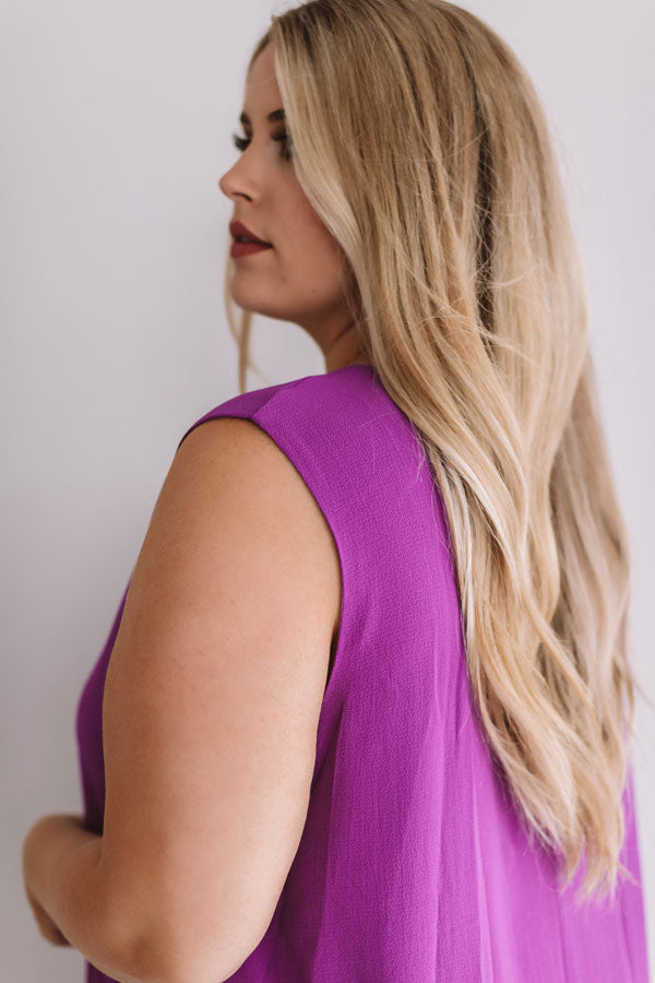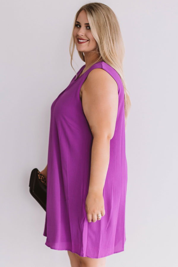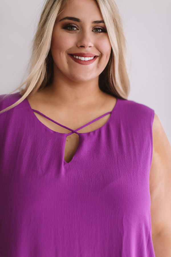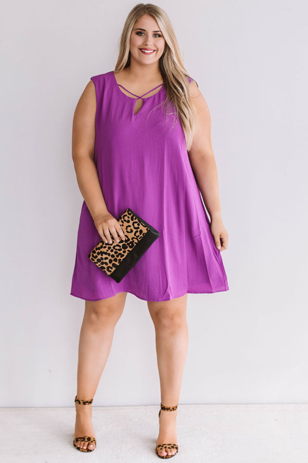 Plus Size - Steal the show everywhere you go in this purple shift dress adorned with a flowy fit, wide straps, and criss crossed neckline! This simple but striking piece can be paired with a leopard heel and clutch or with grey accents like our "Beck Espadrille Wedge" and "Influencer Fabulous Clutch in Light Slate," making this the perfect outfit for a "dinner with a view!" Measurements