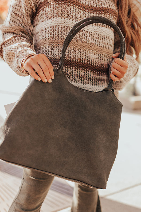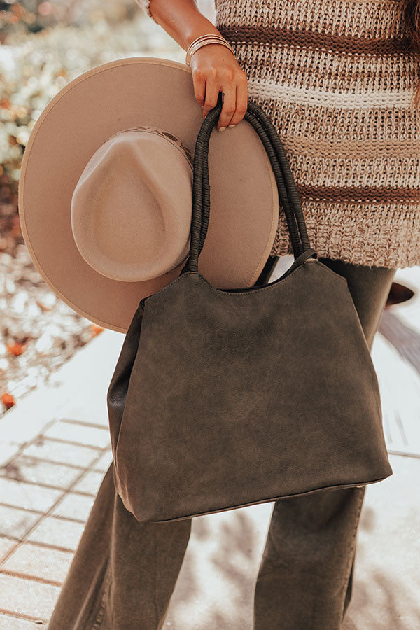 It's an add to cart kind of day, so treat yourself to our sophisticated martini olive colored 'Distance To Denver' tote featuring sleek faux leather material, two twisted tote handles, an outside pouch, and three spacious fully lined compartments with zip closures and additional inside pockets! PLUS, it includes a matching wallet!