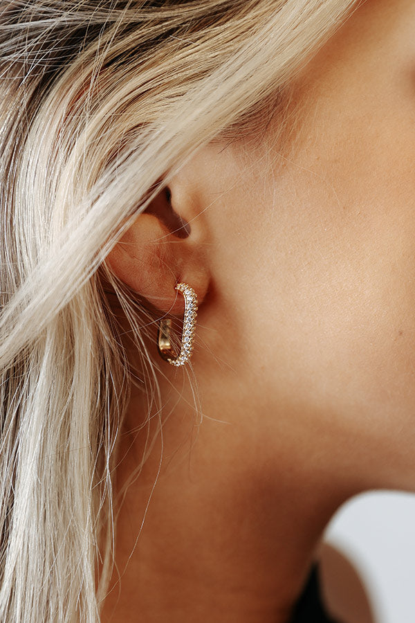We believe it's destiny that you accessorize with these divine earrings featuring small gold rectangular hoops with cubic zirconia embellishing!