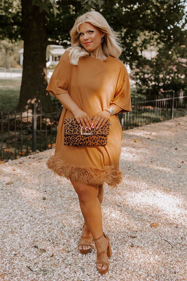 Do It With Pizazz Feather T-Shirt Dress In Camel Curves