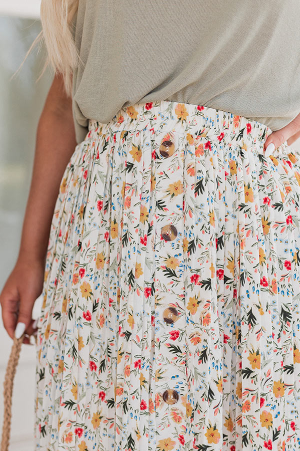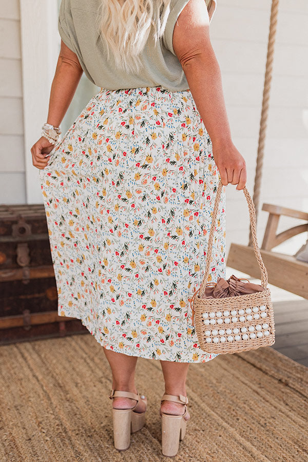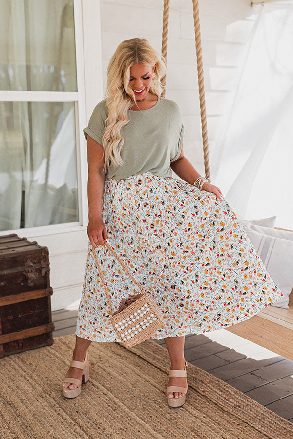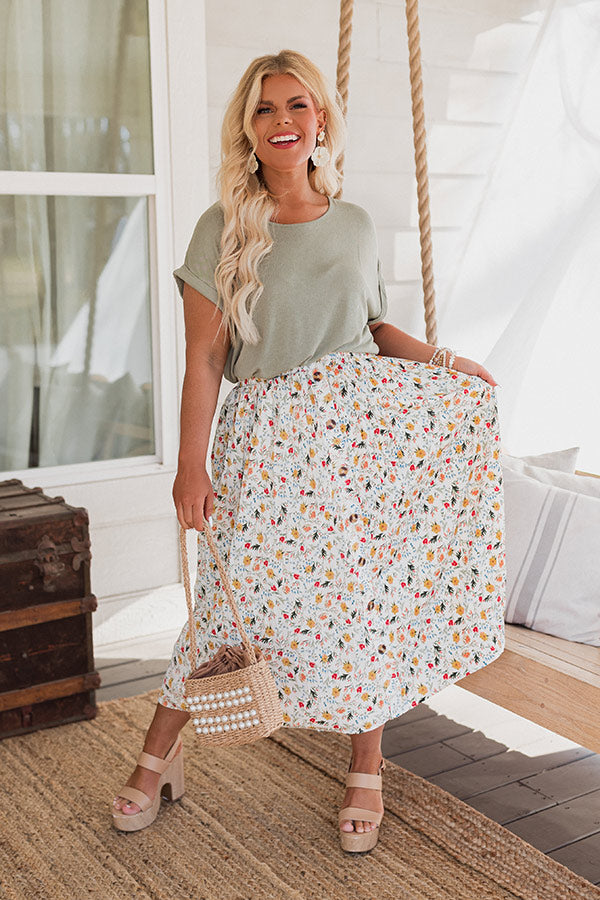 Let your spring style bloom with our beautiful plus size 'Docks And Dreams' skirt featuring lightweight breeze material patterned with a colorful floral print, a high elastic waistline, and a relaxed silhouette that falls into a straight mid-calf length hemline!