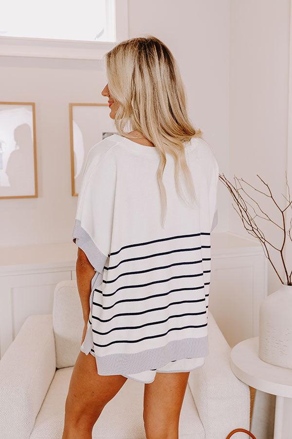 - Elevate your casual chic OOTD with this must-have knit top! With its chic striped pattern, it is the epitome of effortless style. Whether you're brunching with your squad or hitting up the latest hotspot, this piece brings fashion-forward flair with a touch of laid-back glam.