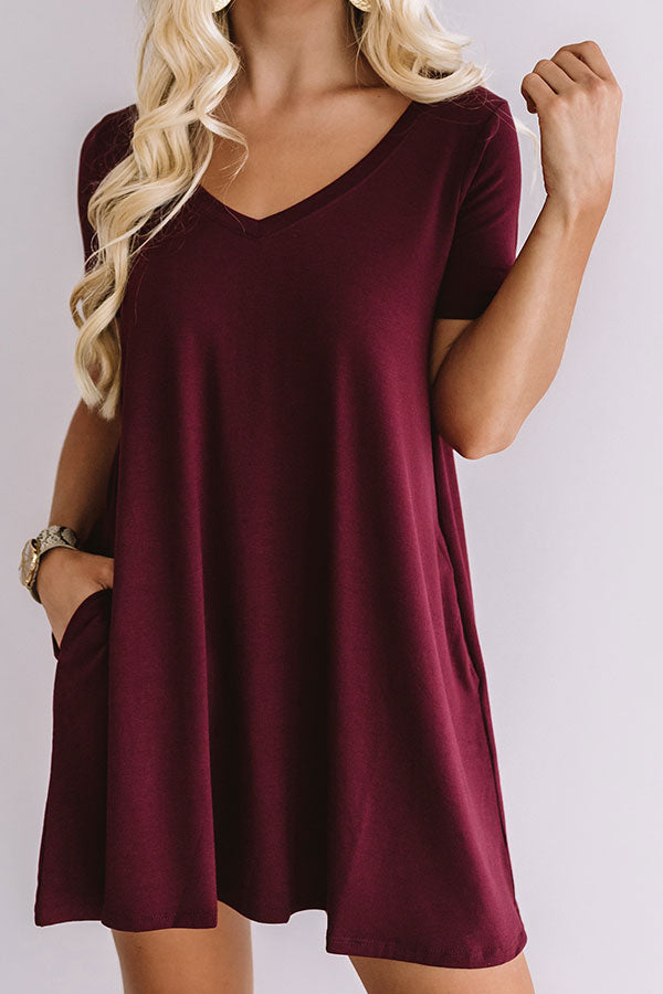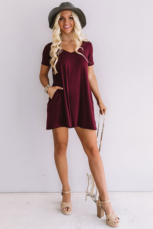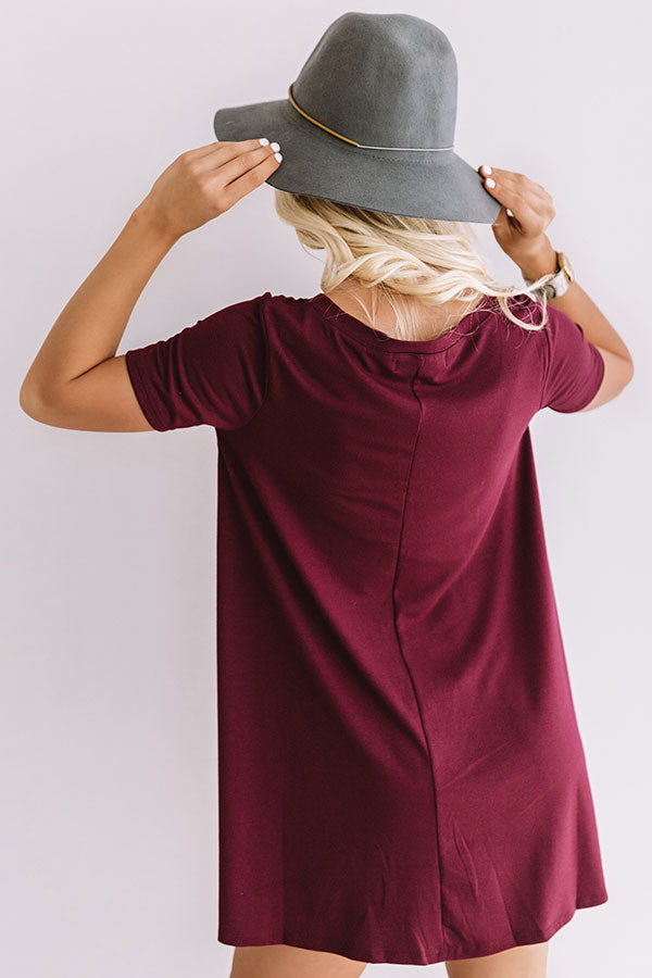 Down, set, chic! This basic maroon t-shirt dress is perfect for wearing on game day with its rounded v-neckline that can be worn off one shoulder, short sleeves, and breezy silhouette! You will be the cutest fan in the stands when you style this versatile piece with some distressed jeans, gold jewelry, and a neutral heel and crossbody, or you can pair it with "The Calum Bootie in Grey" and our "All Caught Up Headband in Grey!" Measurements