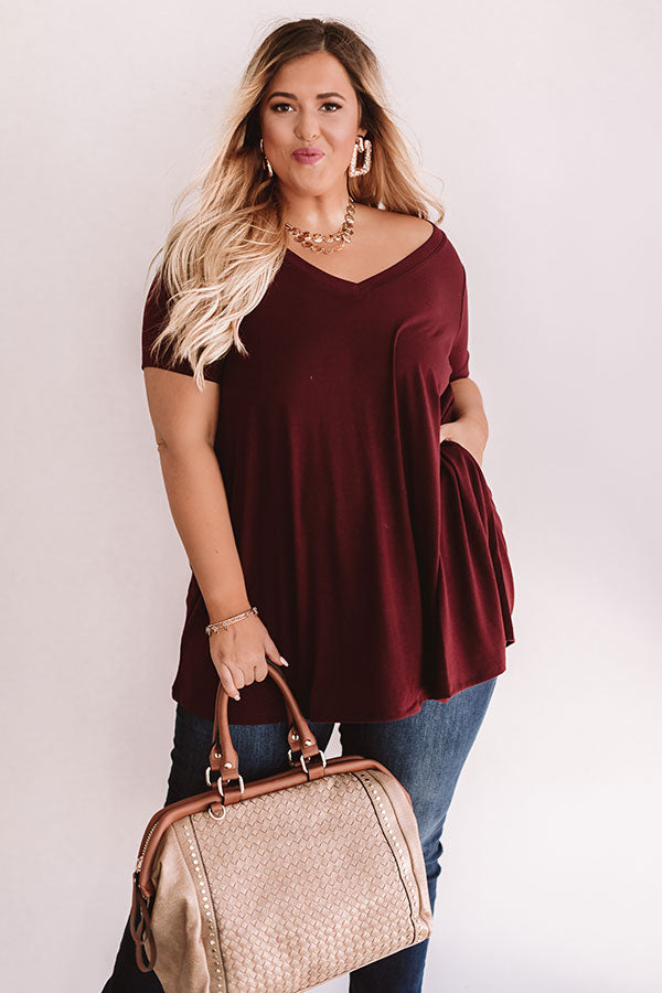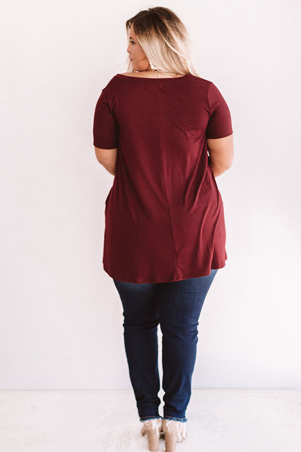 Plus Size - Down, set, chic! This basic maroon t-shirt dress is perfect for wearing on game day with its rounded v-neckline that can be worn off one shoulder, short sleeves, and breezy silhouette! You will be the cutest fan in the stands when you style this versatile piece with some distressed jeans, gold jewelry, and a neutral heel and crossbody, or you can pair it with "The Calum Bootie in Grey" and our "All Caught Up Headband in Grey!" Measurements