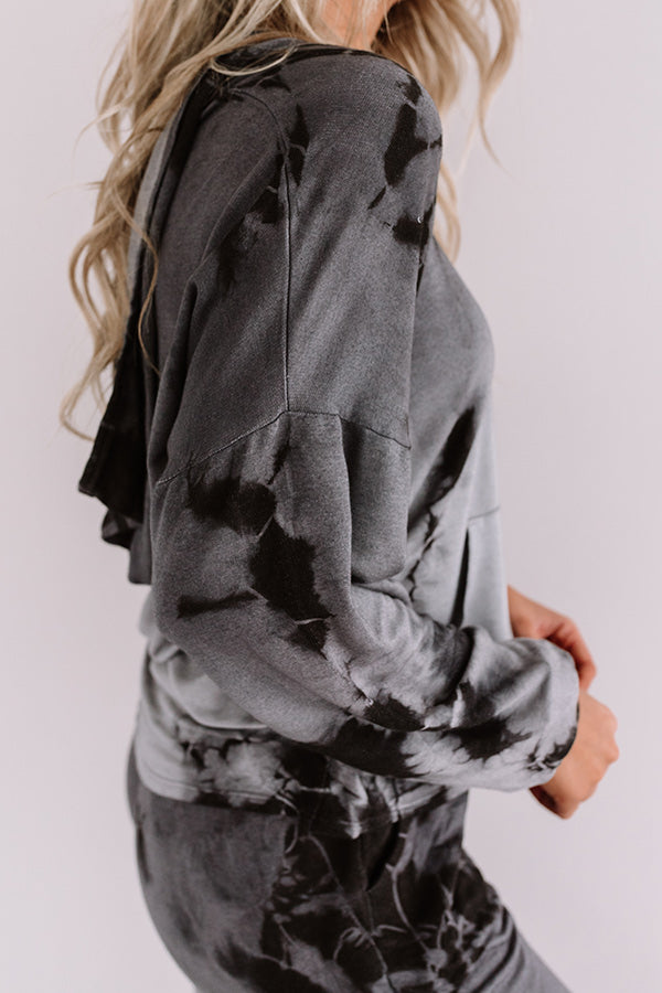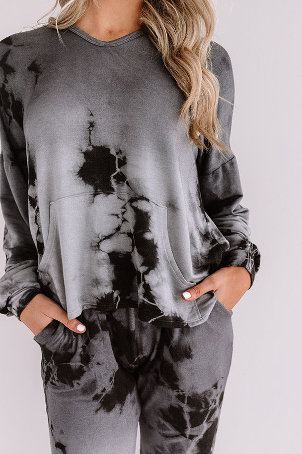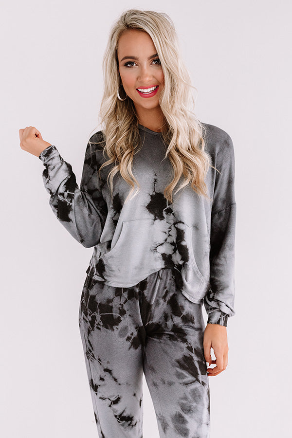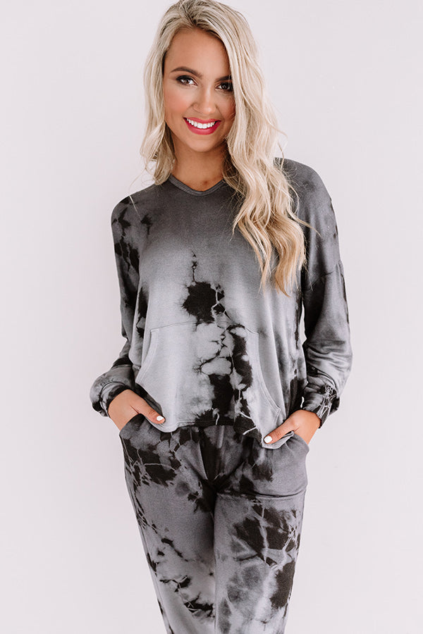 You won't find a more cozy piece to wear when you're "down to chill" than this adorable hoodie featuring soft lightweight material patterned with black tie dye and grey fading, a high neckline with a hooded back, long looses sleeves with fitted cuffs, a large kangaroo front pocket, and a relaxed silhouette that falls into a straight hemline! All you have to do is style it with our "Down To Chill Tie Dye Joggers" and add some fuzzy slippers for the ultimate cozy two piece look! Measurements