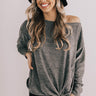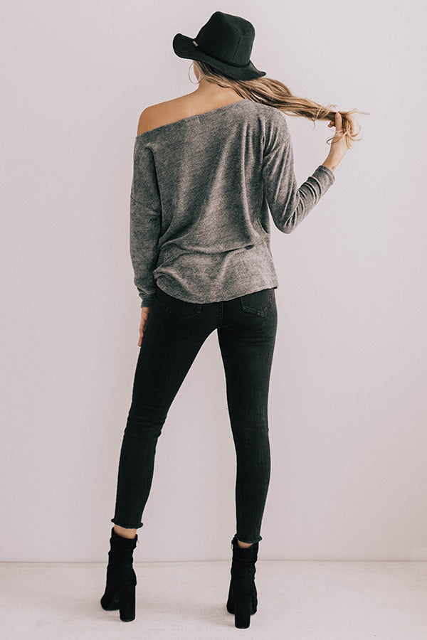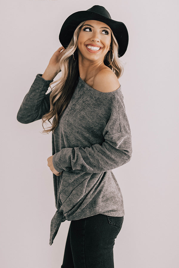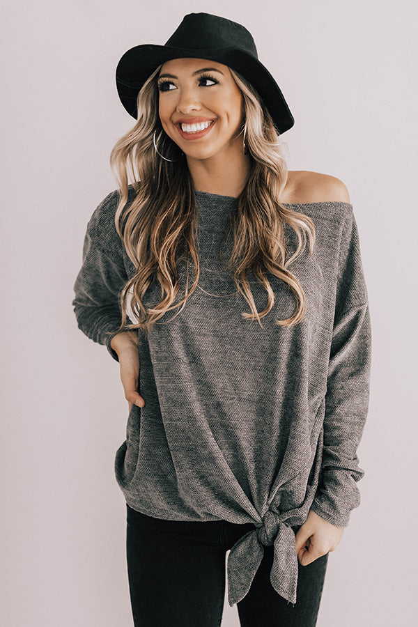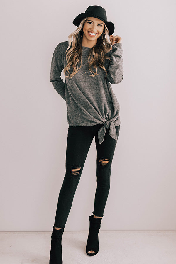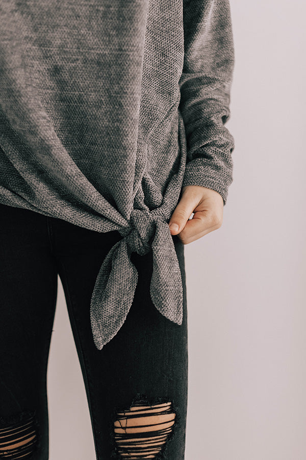 Life isn't perfect, but your OOTD will be when you wear the "Down To Chill" charcoal sweater featuring a soft chenille texture material, a high rounded neckline, long loose sleeves, and an ultra relaxed bodice that falls into a front tied hemline! This cold weather cutie is great for layering and styles perfectly with some distressed black ankle skinnies and a black bootie and faux suede hat, or you can pair this piece with a corduroy skirt or some colored flares, "The Seraphina Faux Leather Wedge in Taupe," and our "Jetset To Italy Tote in Light Taupe" for a variety of looks that have the ultimate fall personality! Measurements