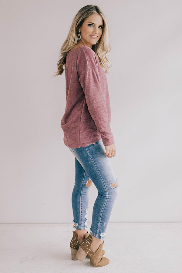 Life isn't perfect, but your OOTD will be when you wear the "Down To Chill" dusty purple sweater featuring a soft chenille texture material, a high rounded neckline, long loose sleeves, and an ultra relaxed bodice that falls into a front tied hemline! This cold weather cutie is great for layering and styles perfectly with some distressed ankle skinnies and a neutral bootie, or you can pair this piece with some black flares, "The Seraphina Faux Leather Wedge in Taupe," and our "Plans In Paris Wool Hat in Taupe" for a variety of looks that have the ultimate fall personality! Measurements