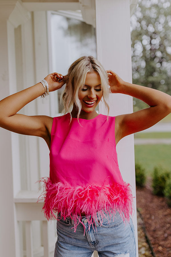 Down To The Riviera Feather Top in Hot Pink