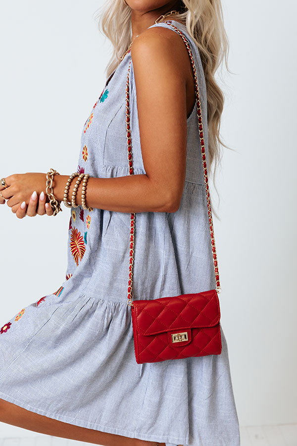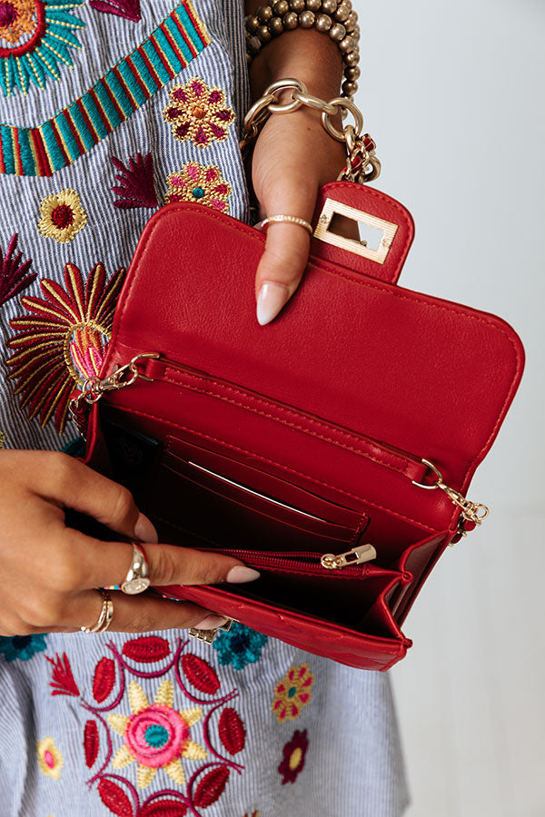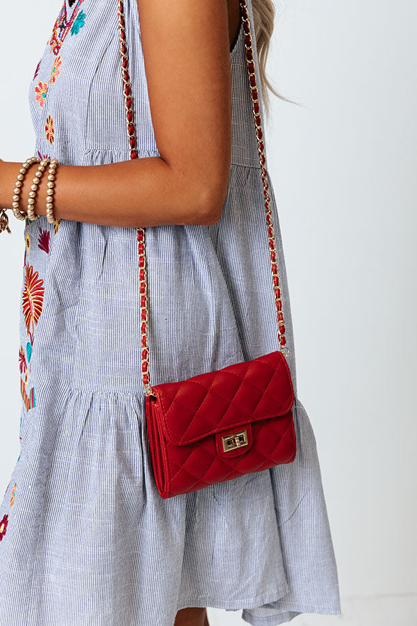 There is no better bag to effortlessly grab and go than our luxe crimson colored 'Down To The Wire' clutch featuring lightweight material with quilted texturing, a chain link shoulder strap, a flap closure with a twist clasp, and a rectangular silhouette with multiple inside compartments and pockets!
