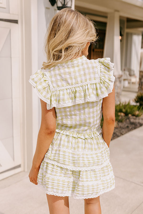 - A flattering silhouette that ends in a subtle ruffled hemline