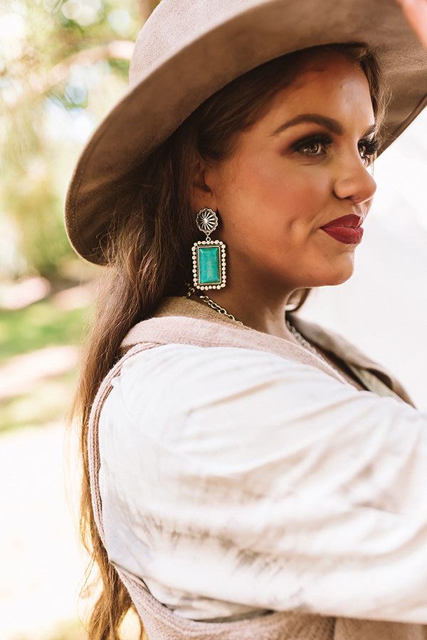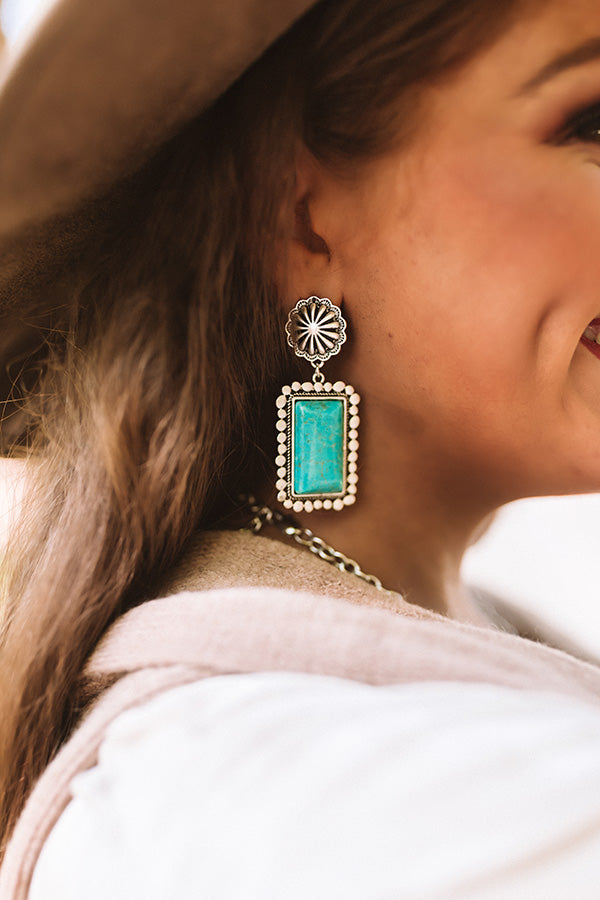 These stunning earrings are anything but boring with their silver flower studs and dangling rectangular turquoise stones!