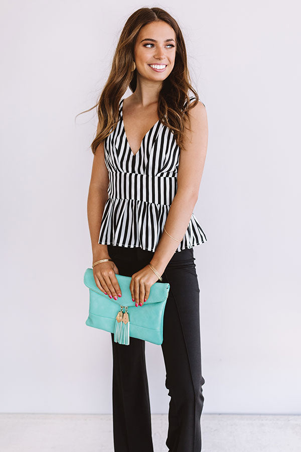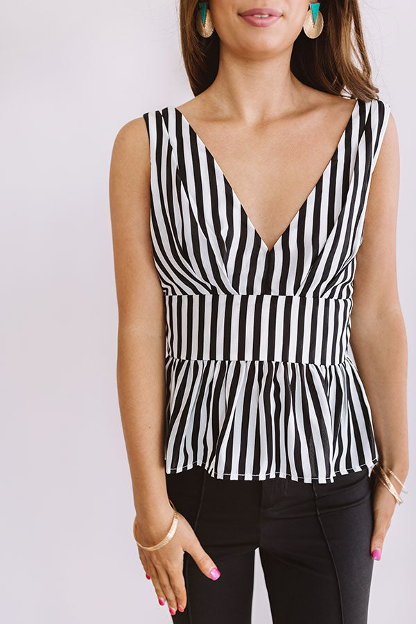 You won't want to miss out getting one of our "Downtown In Dallas" tops with its black and white stripes, wide waistband, peplum bottom, and v-neck and back! This modern piece styles perfect with black flared bottoms, pointed heels, and a colorful clutch for an outfit that you can wear to from your job to hanging with your squad! Measurements