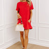 - A relaxed silhouette that ends in a straight mini dress length hemline