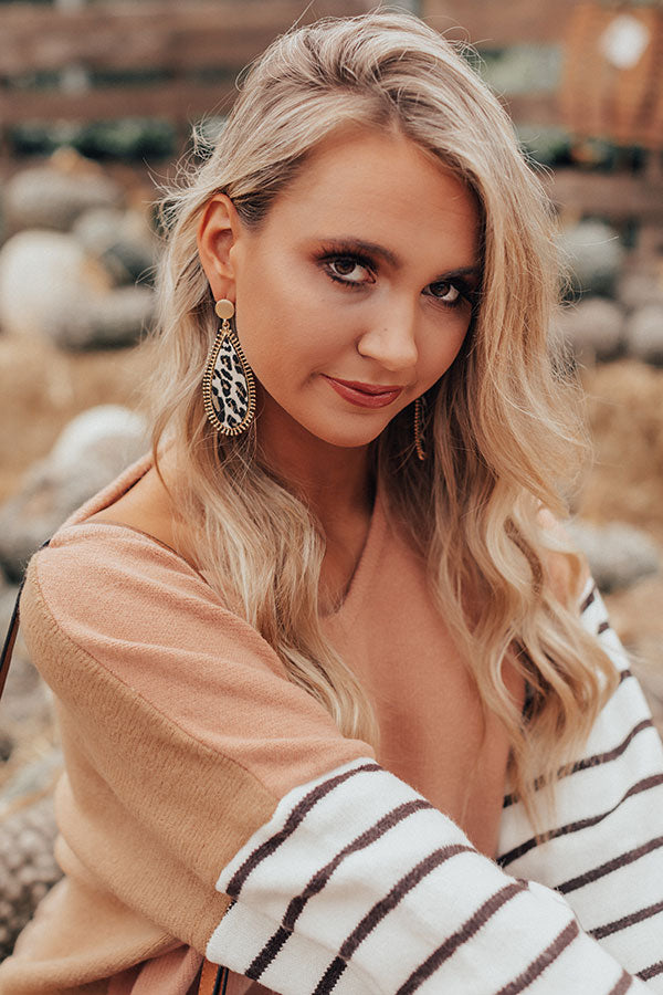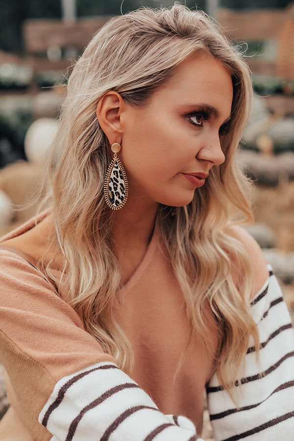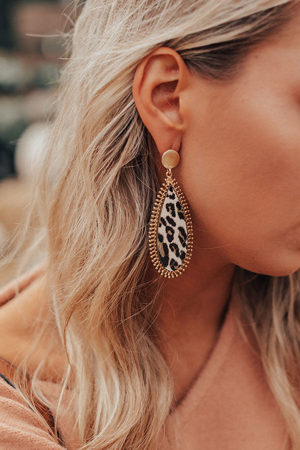 These statement earrings are sure to add a "dramatic effect" to your OOTD with their gold circle studs and dangling white leopard patterned teardrops!