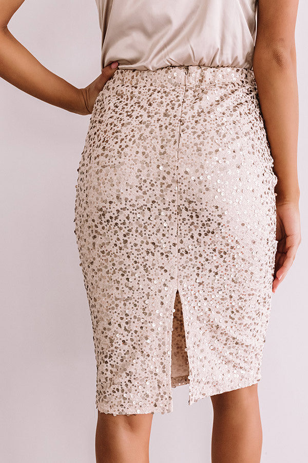 Dramatic Effect Sequin Pencil Skirt in Champagne