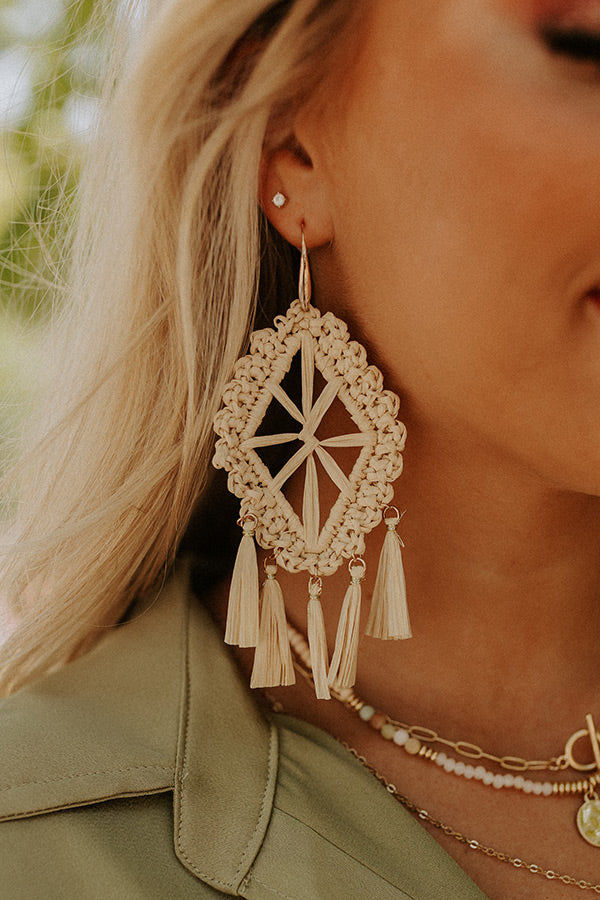 Make a statement with our beautiful natural colored 'Drawn To The Beach Earrings' featuring large dangling crochet diamond shaped pieces with tassel detailing!