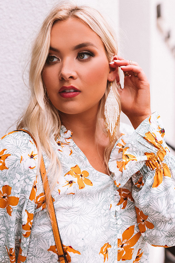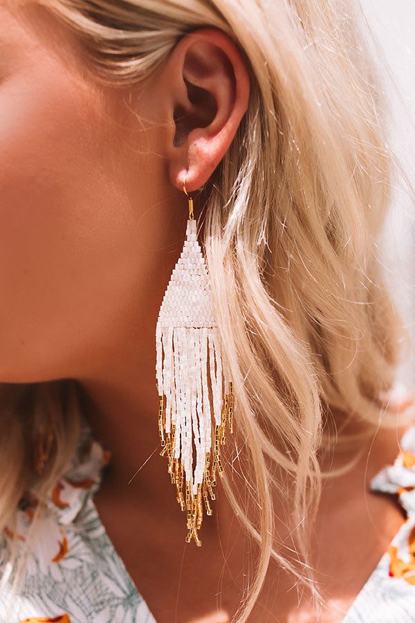 You won't have to dream big to achieve effortless style when you accessorize with these adorable statement earrings featuring dangling white beaded tassels with gold accent tips!