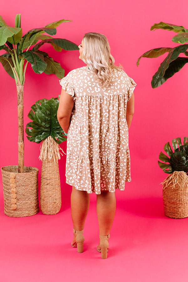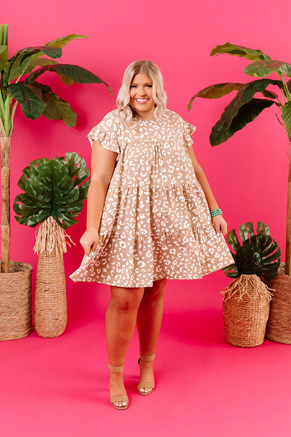 Dreaming Big Leopard Babydoll Dress in Warm Taupe Curves