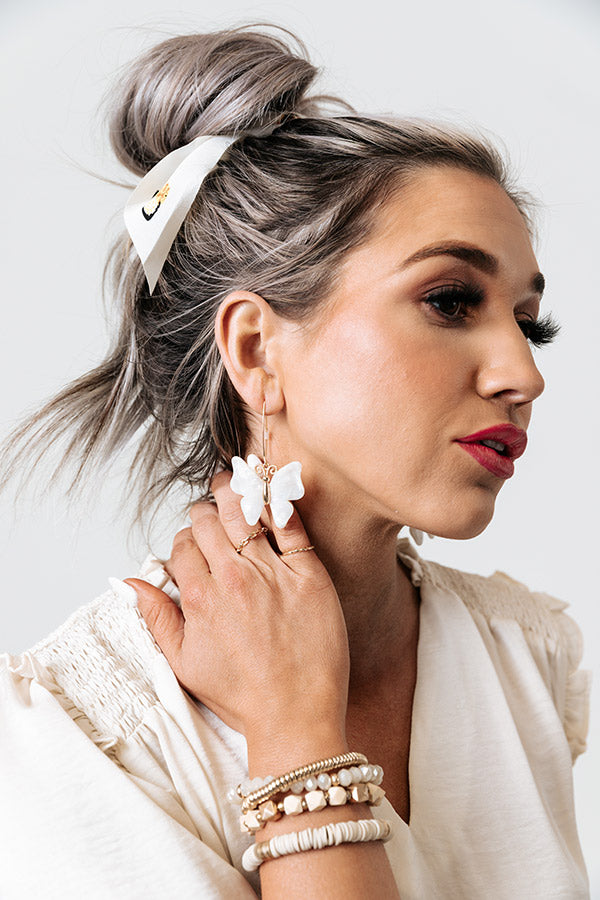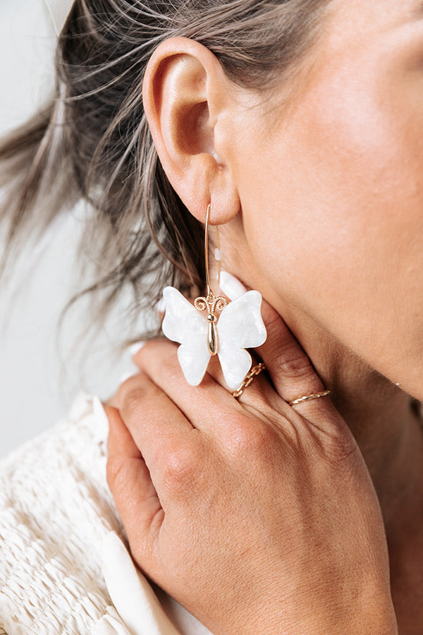Let your accessory style fly free with our gorgeous 'Dreaming Of Dahlia' statement earrings featuring large dangling white pearl butterflies!