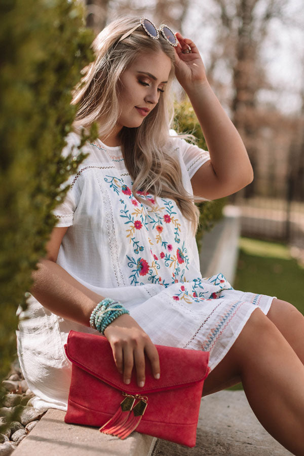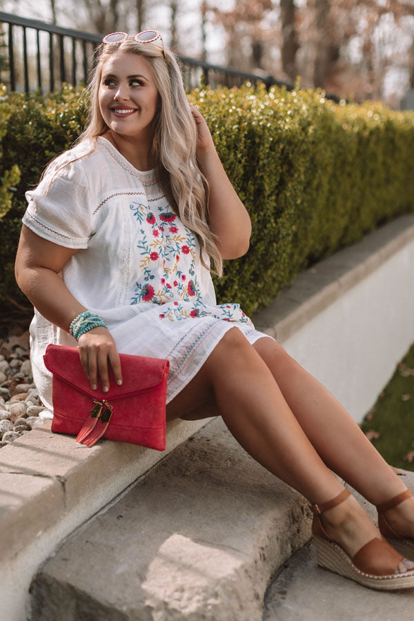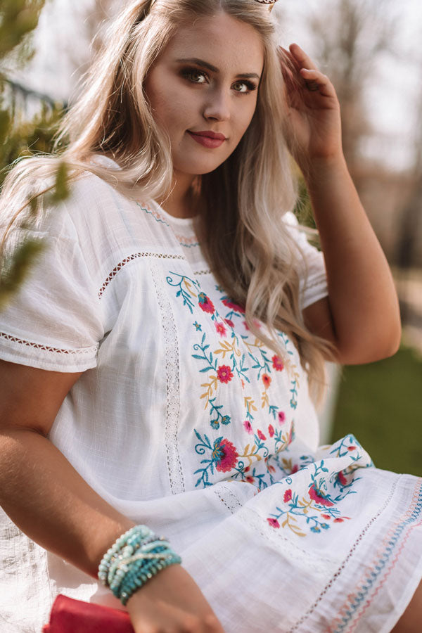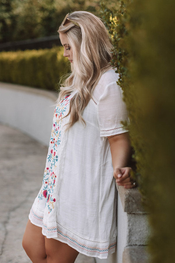 Plus Size - Make all your summer dreams come true in the "Dreaming Of Summer Embroidered Dress!" This cute & breezy dress has short flutter sleeves & a relaxed silhouette that is decorated with colorful floral embroidery. Complete your look with your favorite fun accessories for a sunny day out!