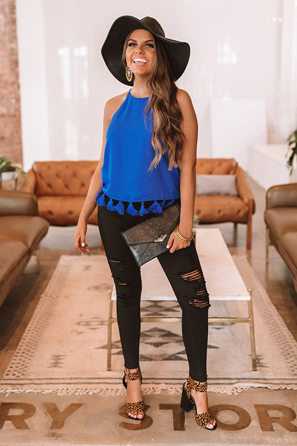 Dreaming Of Vail Tassel Tank in Royal Blue
