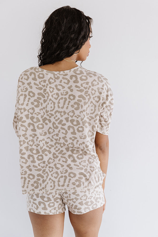 You will look like a "dreamy babe" in this adorable warm taupe colored shift tee featuring ultra soft lightweight material patterned with a neutral hued leopard print, a high rounded neckline, loose half sleeves, and a relaxed silhouette that falls into a rounded hemline! This comfy piece styles perfectly with our matching "Dreamy Babe Leopard Shorts in Cream," a scrunchie, and some fuzzy slippers for the ultimate two-piece lounge look!