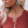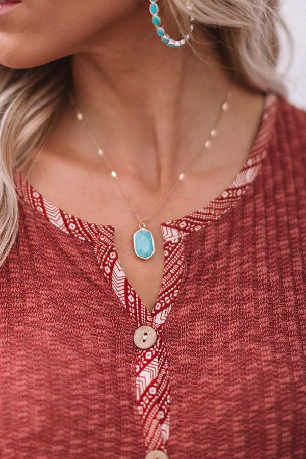 All eyes will be on you when you wear the dainty "Dreamy Days" necklace featuring a short gold chain and a turquoise faux gemstone pendant!