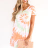 You will be "dressed like a daydream" when you wear this trendy dress featuring soft lightweight material patterned with orange and green hued tie dye, a v-cut neckline, short loose sleeves, and a relaxed silhouette that falls into a straight mid-thigh length hemline! We have styled this cutie with some neutral wedges and matching clutch, but you can also wear it with the "Steve Madden Travel Stud Sandal in Clear" and the "Quay X JLO All In Mini Sunnies in Clear!" Measurements
