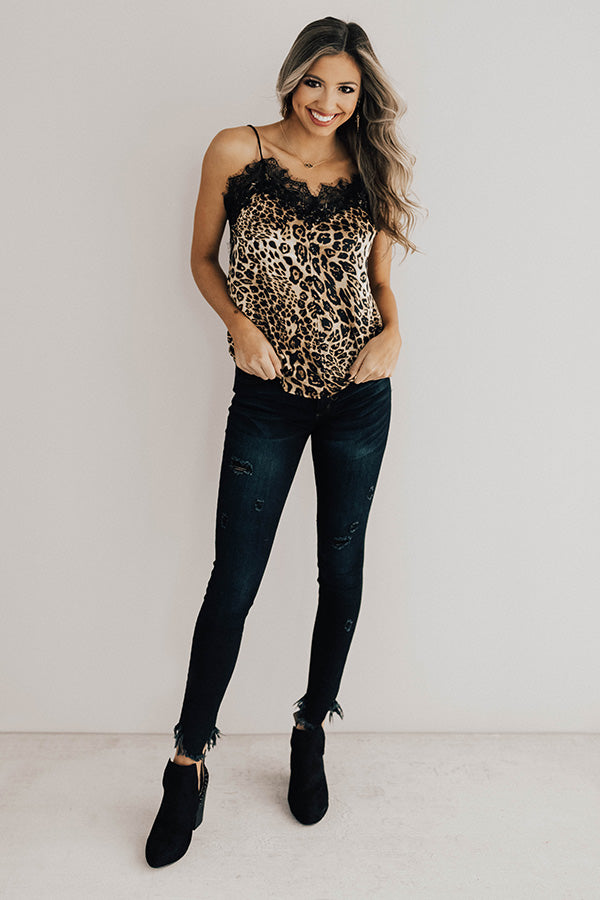 Feel fierce in the lightweight "Dressed To Impress Leopard Tank"! With spaghetti straps, lace lining in front and back and button details along the front of the relaxed fit bodice this cute tank is femme and fabulous!