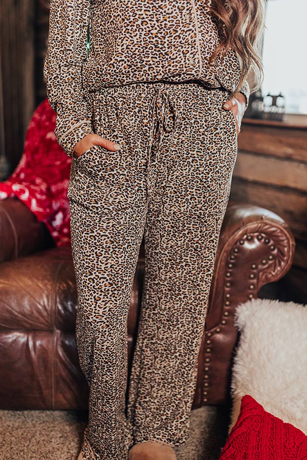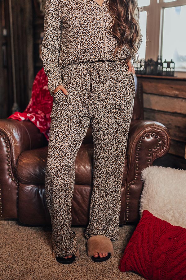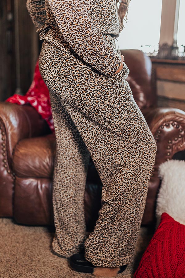 Drift off to sleep in comfort and style with these adorable brown pajama pants featuring soft lightweight material patterned with a small black leopard print, an elastic waistline with a tie belt, accent side pockets, and a slouched silhouette that falls into straight floor-length hemlines! Style with our matching 'Drift To Sleek Leopard Pajama Top' for the ultimate winter sleep set! Measurements