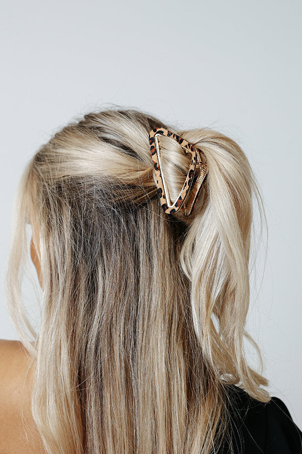 Your hairstyle will be worthy of a mic drop when you clip it up with this adorable hair claw featuring a light brown open triangle silhouette patterned with a black leopard print!