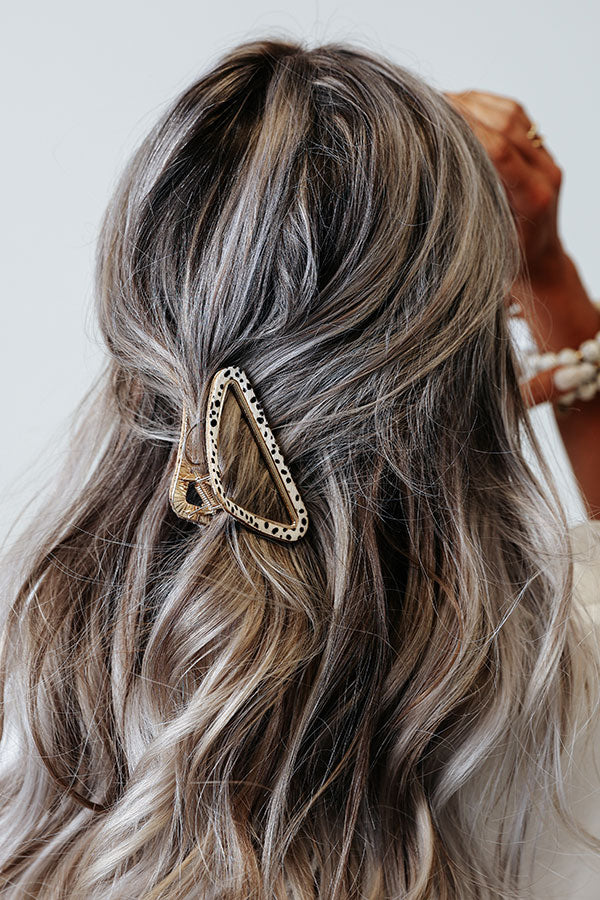 Your hairstyle will be worthy of a mic drop when you clip it up with this adorable hair claw featuring a white open triangle silhouette patterned with a black cheetah print!