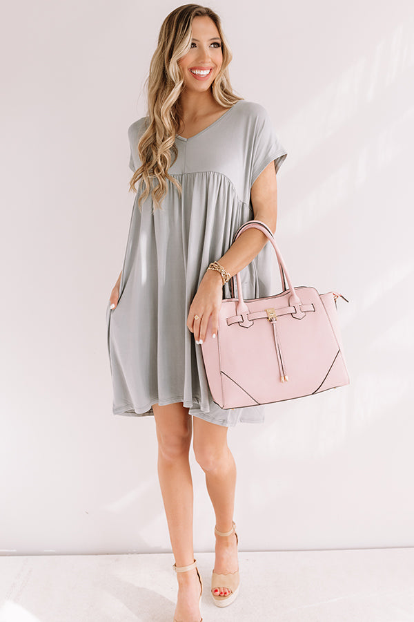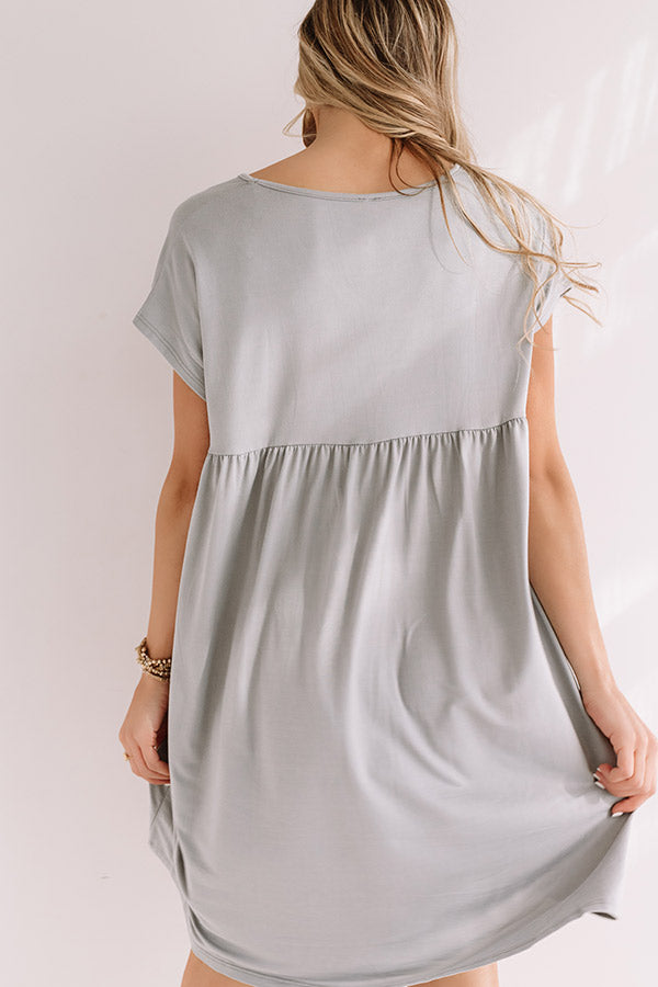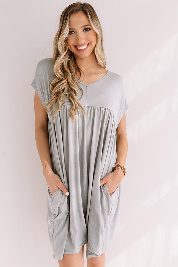 Keep it casual but cute in our adorable grey "Dunes And Daydreams" dress featuring soft lightweight material, a v-cut neckline, short loose sleeves, low accent side pockets, and an ultra relaxed babydoll silhouette that falls into a straight mid-thigh length hemline! You can style this adorable piece a variety of ways, like dressed up with some neutral wedges and a blush tote, or you can dress it down by wearing it layered under a distressed denim jacket with "The Lyla Sandal in Black" and our "All Caught Up Headband in Black!" Measurements