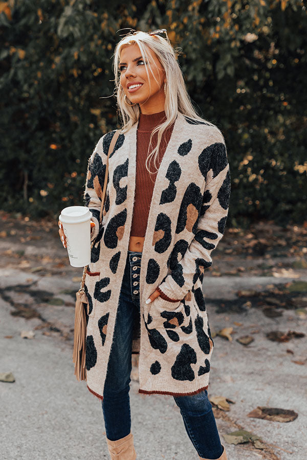 Early Bird Leopard Cardigan In Light Iced Latte