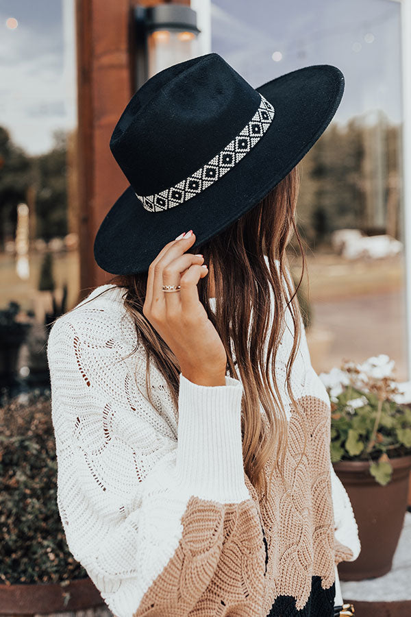 Top off your look in style with our black 'Easily Empowered' fedora featuring lightweight felt material, a 4-inch brim, and a black diamond patterned accent band!