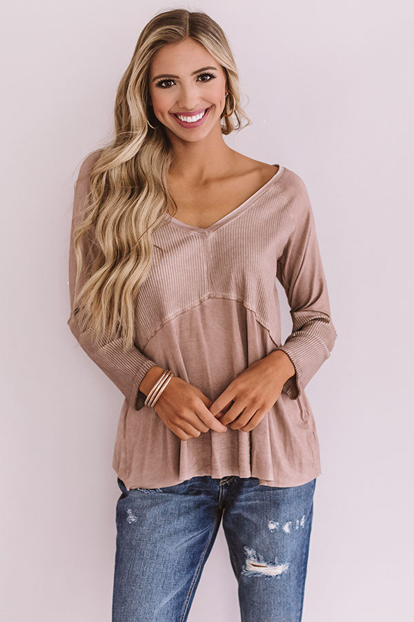 Transitional to fall in style with our blush colored "East Avenue" top featuring lightweight material with subtle texturing, a wide v-cut neckline that can be worn off both shoulder, long loose sleeves, an exposed raw but bodice seam, and a relaxed babydoll silhouette that falls into a rounded hemline! We have styled this piece with some distressed ankle skinnies and snake print booties, but you can also wear it with some charcoal flares, "The Saylie Peep Toe Heel in Blush," our "Style Profile Faux Leather Tote in Grey," and our "All Caught Up Headband in Grey!" Measurements