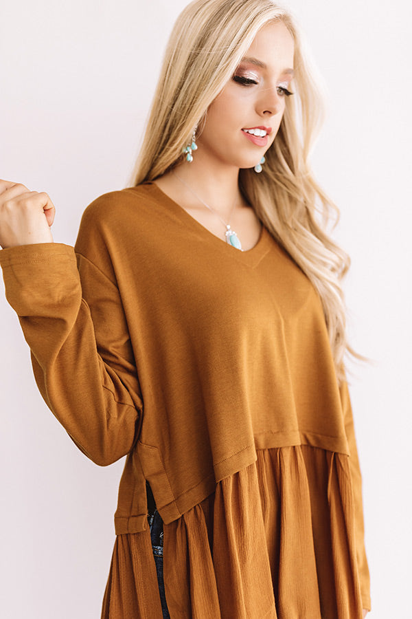 Add an edgy personality to your pristine fall style with the "East Coast Edge" mustard colored hoodie featuring a lightweight material, long loose sleeves, a high v-cut neckline with a hooded back, a ultra relaxed bodice, and a breezy peplum bottom that falls into an uneven hemline with high side slits! We have styled this piece with some distressed ankle skinnies, turquoise statement jewelry, and a neutral pointed bootie and tote, or you can wear it with some charcoal flares, "The Jess Faux Suede Heel in Natural," and our "All Caught Up Headband in Ivory!" Measurements
