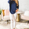 This striped beauty is giving off serious weekend vibes! This casual cutie is perfectly paired with your favorite denim short and strappy sandals! Measurements