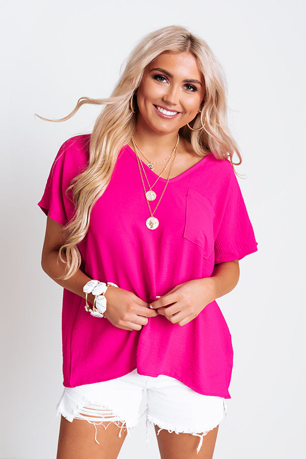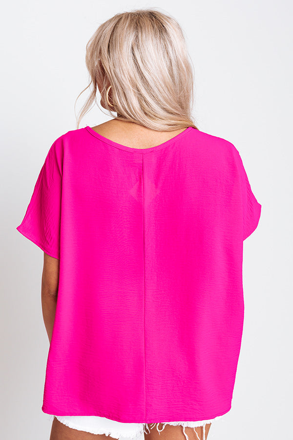 There is no better piece to throw on and go with than our casual hot pink 'Easy Come, Easy Go Shift Top' featuring lightweight flowy material, a v-cut neckline, a single accent chest pocket, short loose sleeves, and a slouched silhouette that ends in a straight hemline! Measurements